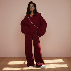Burgundy Freya Polo Neck Ribbed Tracksuit